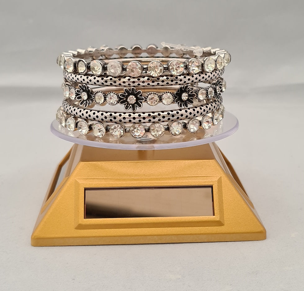 Vintage style Diamontie, flower detailed silver plated 5 piece Bangle set